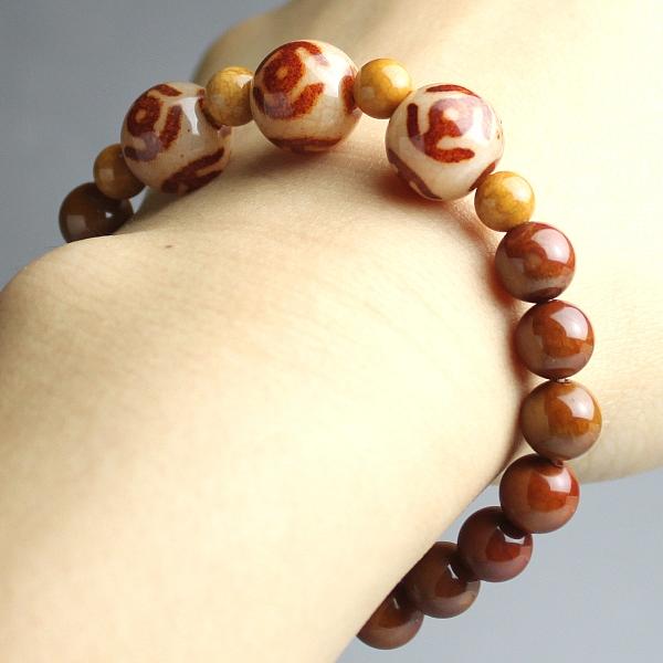 高級龍紋天珠 三珠 ブレスレット(中)(貴人)チベット 天珠ブレスレット メンズ レディース 風水グッズポッキリ ゆうパケット送料無料 auktn