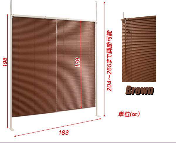 ■商品の仕様/本体:スチール(エポキシ樹脂粉体塗装)、ブラインド:PVC、製品重量:(約)10kg、組立式(所要時間約30分)、本体:日本製、ブラインド:中国製■商品サイズ/本体(アジャスター含む):(約)幅183×奥行13×高さ204〜265cm、ブラインド:(約)幅88×スラット幅2.5×高170cm×2 組立てはお客様にてお願いいたします。
