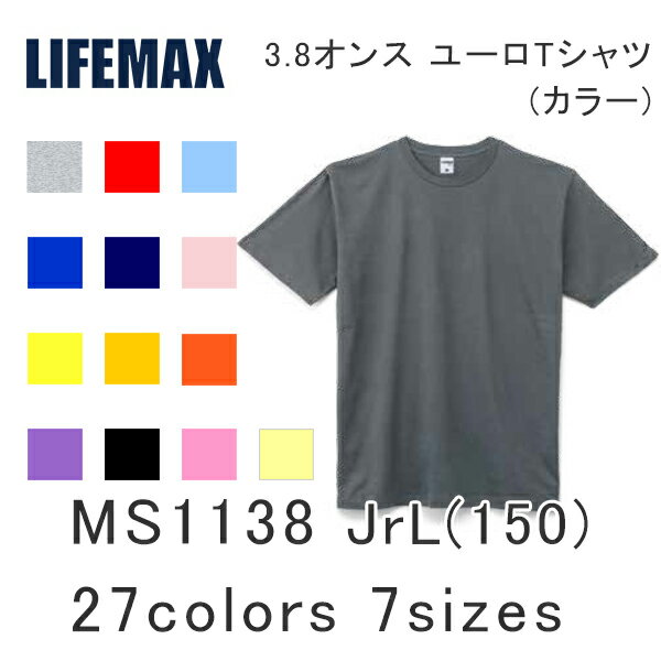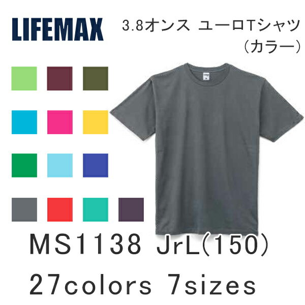 【B】tシャツ 無地 キッズ半袖tシャツ レディース半袖tシャツ ユニセックス 白無地tシャツ│3.8オンス Tシャツ│LIFEMAX(ライフマックス) │Jr. Lサイズ 150│メンズ レディース│MS1138│3.8 オンス ユーロ Tシャツ (カラー) -B-