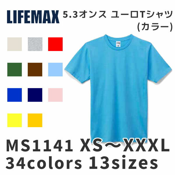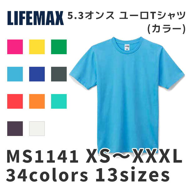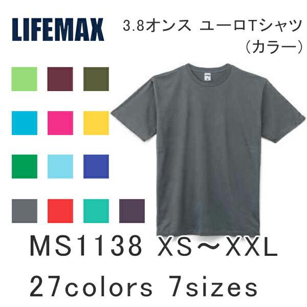 【B】tシャツ 無地 メンズ半袖tシャツ レディース半袖tシャツ ユニセックス カラー無地tシャツ│3.8オンス Tシャツ│LIFEMAX(ライフマックス) │XS S M L XL XXL│メンズ レディース│MS1138│3.8 オンス ユーロ Tシャツ (カラー) -B-