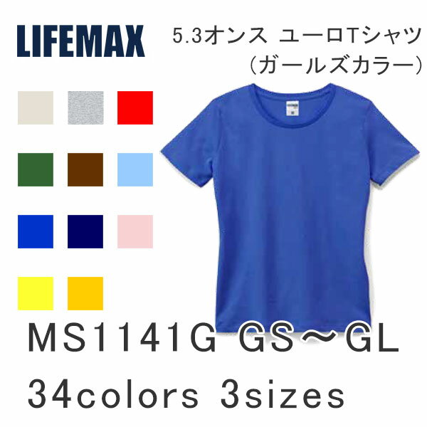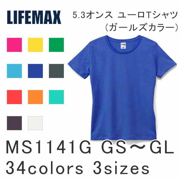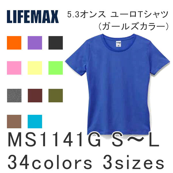 【B】tシャツ 無地 レディース半袖tシャツ 白無地tシャツ│5.3オンス Tシャツ│LIFEMAX(ライフマックス)│S M L│レディース│MS1141GW│5.3 オンス ユーロ Tシャツ (ガールズカラー) -B-
