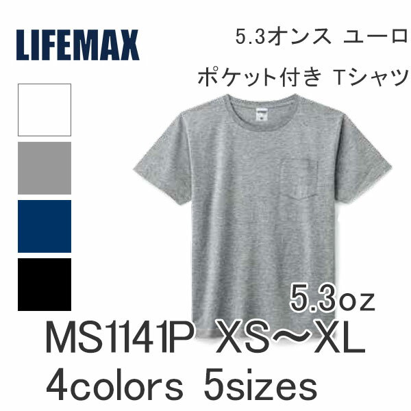 【B】tシャツ 無地 メンズ半袖tシャツ レディース半袖tシャツ ユニセックス │5.3オンス Tシャツ│LIFEMAX(ライフマックス) │XS S M L XL│メンズ レディース│MS1141P│5.3オンス ユーロ ポケット付き Tシャツ -B-