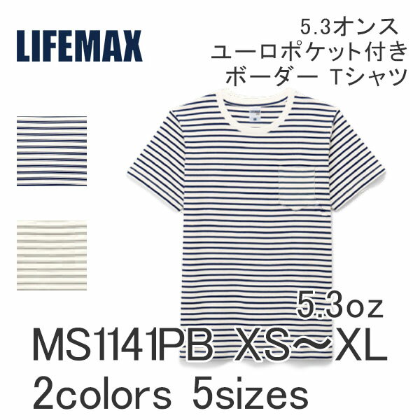 【B】tシャツ ボーダー メンズ半袖tシャツ レディース半袖tシャツ ユニセックス │5.3オンス Tシャツ│LIFEMAX(ライフマックス) │XS S M L XL│メンズ レディース│MS1141PB│5.3 オンス ユーロ ポケット付き ボーダー Tシャツ -B-