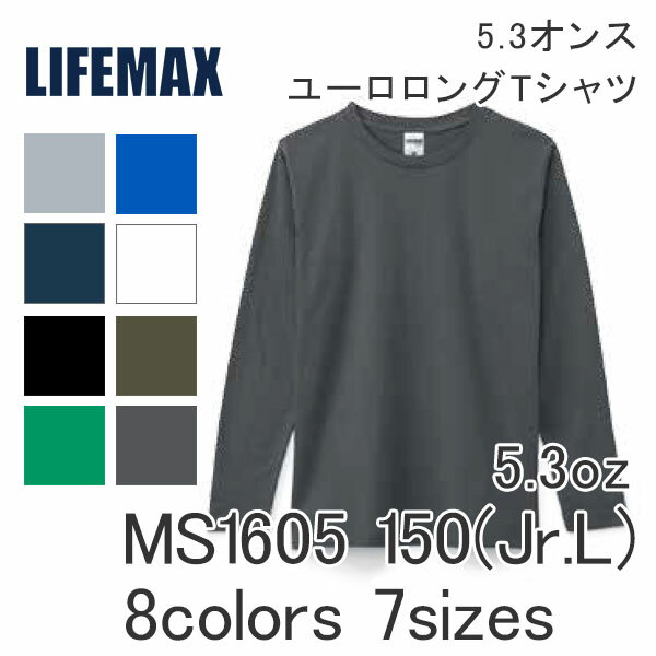 【B】tシャツ 無地 キッズ長袖tシャツ レディース長袖tシャツ ユニセックス 黒無地tシャツ 白無地tシャツ│5.3オンス Tシャツ│LIFEMAX(ライフマックス)│ホワイト ブラック│150(Jr.L)│メンズ レディース│MS1605│5.3 オンス ユーロ ロング Tシャツ -B-