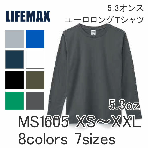 【B】tシャツ 無地 メンズ長袖tシャツ レディース長袖tシャツ ユニセックス 黒無地tシャツ 白無地tシャツ│5.3オンス Tシャツ│LIFEMAX(ライフマックス)│ホワイト ブラック│XS S M L XL XXL│メンズ レディース│MS1605│5.3 オンス ユーロ ロング Tシャツ -B-