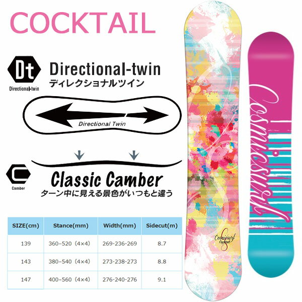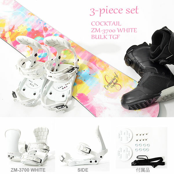 COCKTAIL / ZM3700 WHITE /BULK TGF ●COCKTAIL /板(ボード) ツインチップ形状と方向性を持ったゆったりとしたサイドカーブを組み合わせたキャンバータイプのスノーボードです。