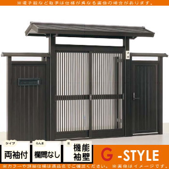 形材門扉 アルミ 塀 鍵 LIXIL リクシル TOEX 数寄屋門(すきやもん) ニュー福寿門【切妻屋根付き 両袖付き 袖壁+袖壁 縦格子タイプ 欄間なし 機能付+標準】