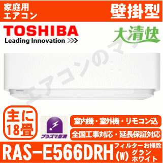 【土曜出荷OK】【送料無料(関東甲信/北陸中部/関西/東北のみ)】東芝■RAS-E566DRH-W■ ※単相200V 2018年モデル【大清快-E-DRHシリーズ-】[主に木造18畳 鉄筋20畳用][240サイズ]【あす楽対応】