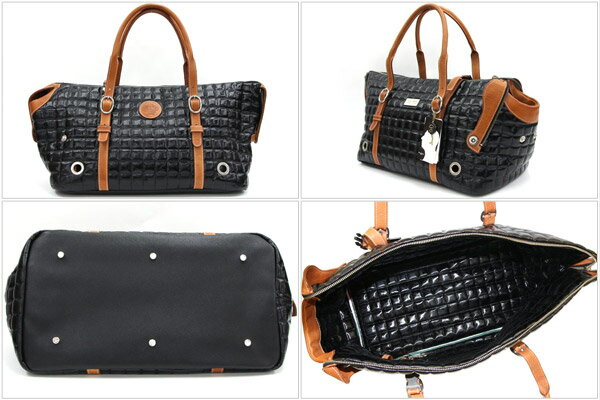 【中古】オロビアンコ トートバッグ ドッグキャリーバッグ ブラック ブラウン コーティングキャンバス レザー かばん ボストンバッグ 黒 犬 キルティング ステッチ Orobianco | トートバック トート バッグ バック レザートート ブランド ブランドバック ブランドバッグ