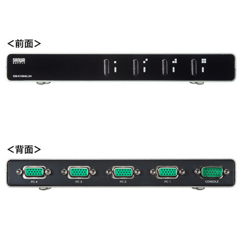 <仕様>■対応解像度:解像度2048×1536ドットまで表示可能(DDC2B対応)■インターフェース【パソコン用】・オールインワンコネクタ/SPDB 15pinメス×4 ※VGA/キーボード/マウス信号ラインを一体化【コンソール用】・オールインワンコネクタ/SPDB 15pinオス×1 ※VGA/キーボード/マウス信号ラインを一体化■付属パソコン用ケーブル【パソコン用】 ・キーボード・マウス用/USB Aコネクタオス×1・ディスプレイ用/ミニD-sub(HD)15pinオス×1【切替器用】・オールインワンコネクタ/SPDB 15pinオス×1 ※VGA/キーボード/マウス信号ラインを一体化■付属コンソール用ケーブル【コンソール用】 ・キーボード用/USB Aコネクタメス×1・マウス用/USB Aコネクタメス×1・ディスプレイ用/ミニD-sub(HD)15pinメス×1【切替器用】・オールインワンコネクタ/SPDB 15pinメス×1 ※VGA/キーボード/マウス信号ラインを一体化■消費電力:動作電圧-USBポートから電源供給/DC+5V、消費電流/340mA(最大)■切替方式:ホットキー切り替え、オートスキャン切り替え、本体ボタン切り替え■動作時温度・湿度:温度/0〜50℃ 湿度/80%以下(結露なきこと)■保管時温度・湿度:温度/−20〜60℃ 湿度/80%以下(結露なきこと)■サイズ:W197×D80×H25mm(本体サイズ)■付属品:パソコン接続用ケーブル(1.8m×2、1.2m×2)、コンソール接続用ケーブル(0.25m×1)、取扱説明書(保証書付き)■対応パソコン・Windows搭載(DOS/V)デスクトップパソコンまたはノートパソコン・Apple Macシリーズ※USB Aコネクタ メス、ミニD-sub(HD)15pinディスプレイコネクタを持つ機種■対応キーボード:USBキーボード※キーボードに搭載されているUSBハブポートは本製品経由では使用することはできません。