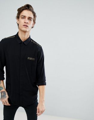 エイソス ASOS メンズファッション ポケット フィット スタッズ レギュラー 黒 メンズ シャツ 男性用 ブラック トップス 【 BLACK REGULAR FIT SHIRT WITH STUDDED POCKET 】