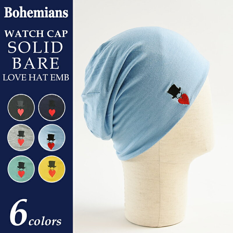ボヘミアンズ ワッチキャップ ラブアンドハットWATCH−CAP LOVE&HAT エンブレム肌触りがとても良いストレッチ生地です ボヘミアンズ無地柄です!ヤマト運輸ネコポス便発送できます!