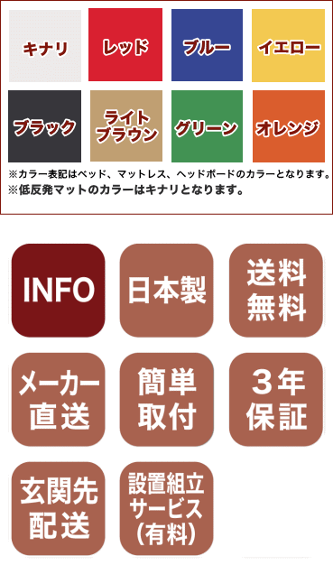※カラー表記はベッド、マットレス、ヘッドボードのカラーとなります。